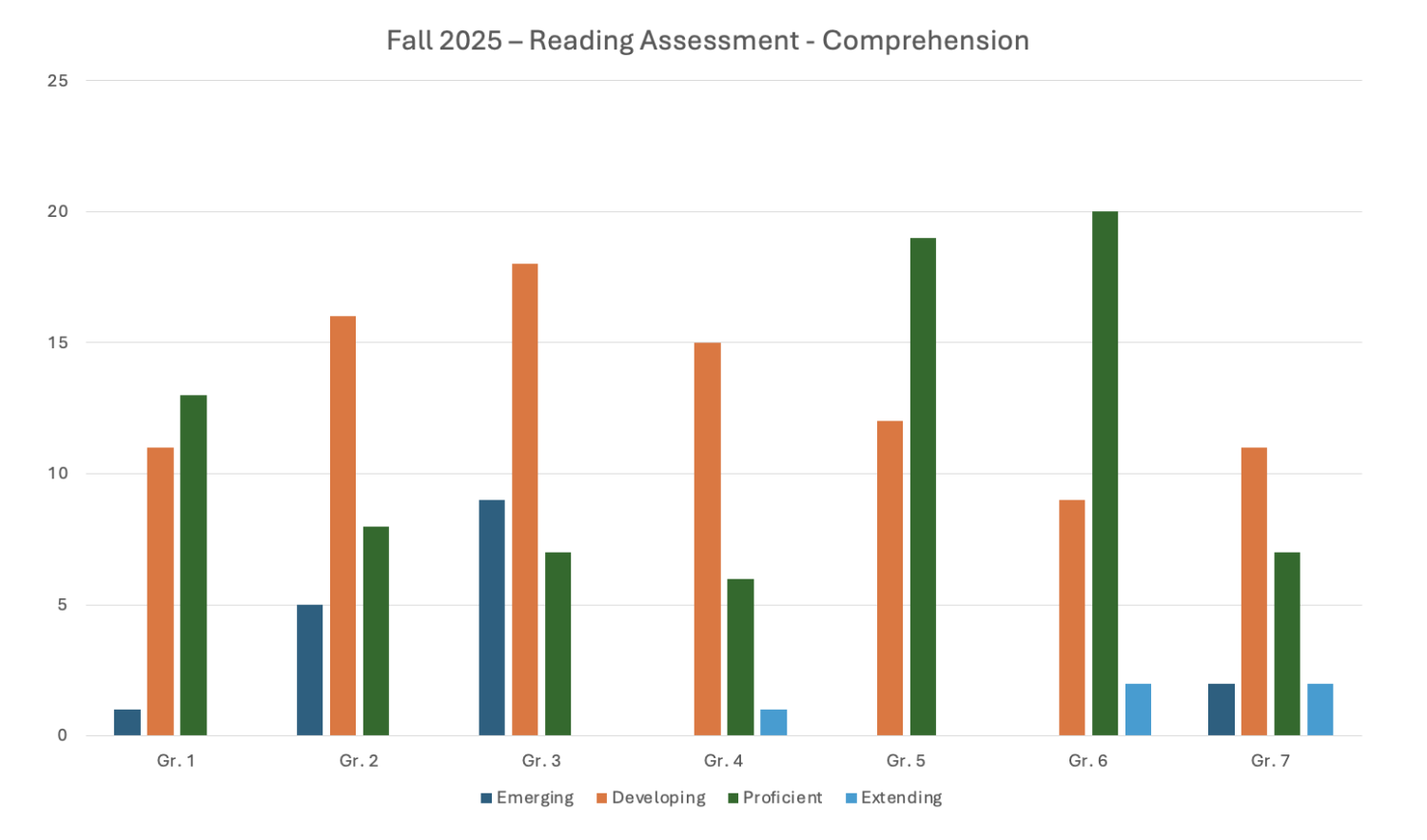 Reading data shows that we need to continue to develop comprehension skills across all grades.