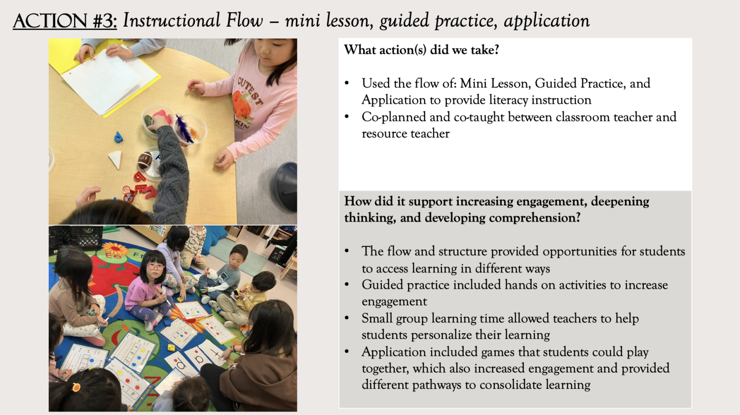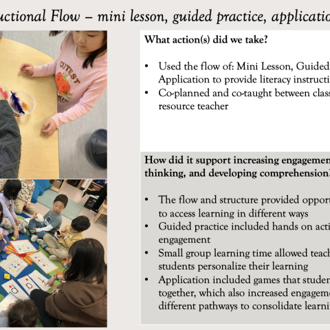 - instructional flow for literacy lessons: Mini Lesson, Guided Practice, Application
